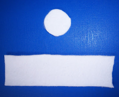 Из белого флиса вырезаем кружочек для помпона и полоску (около 15 см. длиной для отворота шапочки)