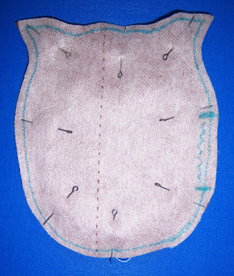 Пришиваем "рубачку" на одну из деталей туловища вручную, оставляя снизу место на несколько миллиметров больше, чем припуски для швов.
