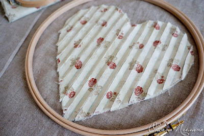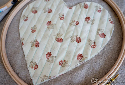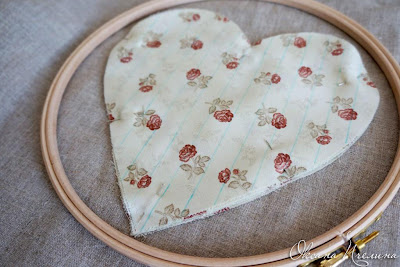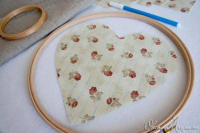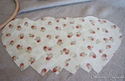Первоначально нам необходимо вырезать из отделочной ткани заготовку той формы, которую хотим получить (у меня - это форма сердца).
