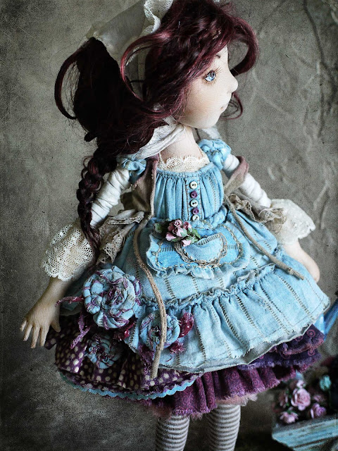 ...первая куколка, Грейс - получилась вполне в задуманном стиле. На оборках, рюшах, бантиках и цветочках я прямо-таки отвела душу. Но при том сама Грейс задумчива и нежно-меланхолична - и она сама решила быть такой (вечно эти куколки проявляют характер! если не в костюме, так в настроении.) Ну да мало ли отчего юная принцесса может загрустить!.. Это миг, а в следующий она кокетливо улыбнется и побежит танцевать
