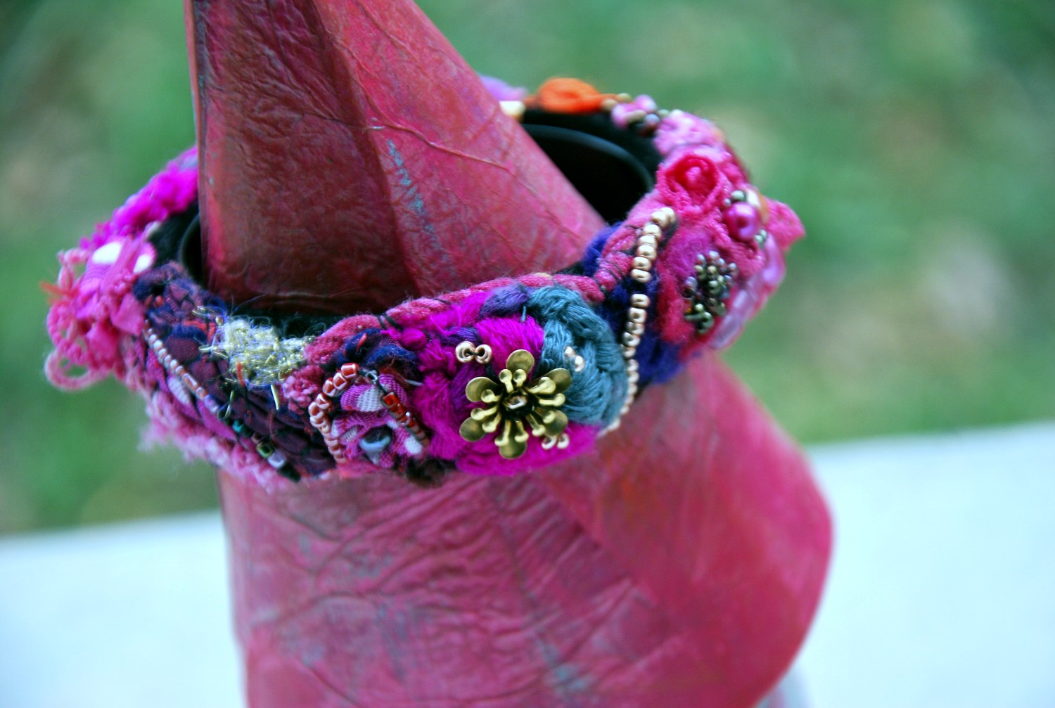 Браслет, который расшит войлоком и бусинами для придания ему богемного вида